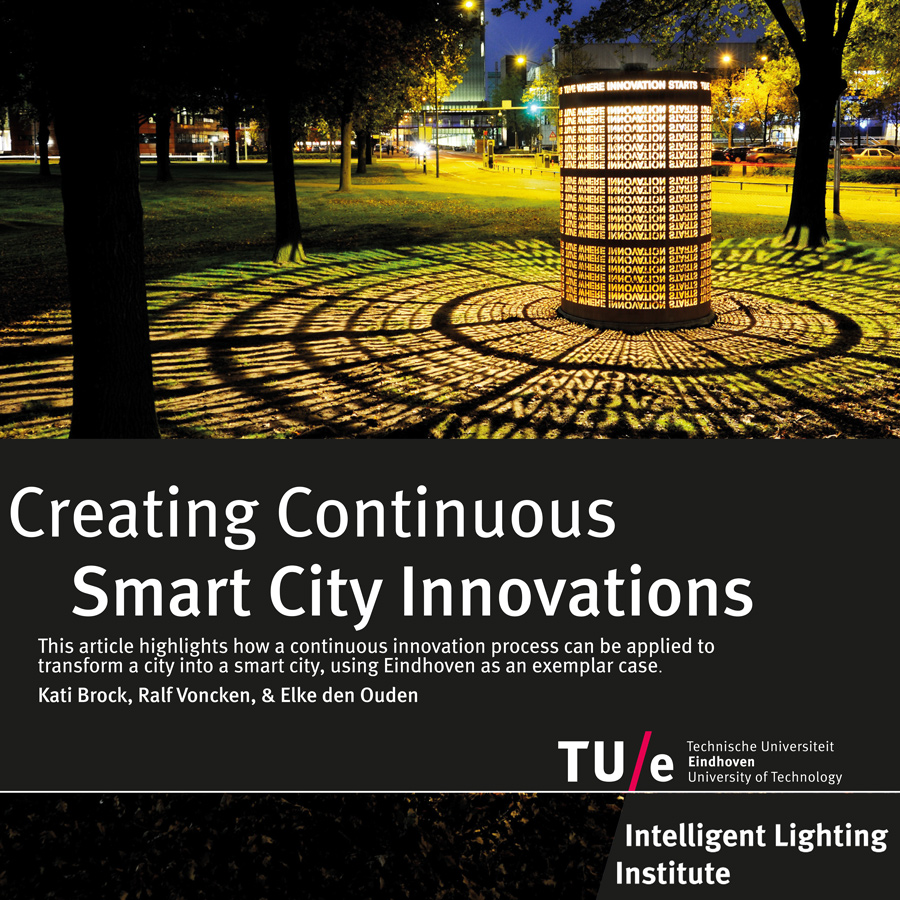 Kati Brock, Ralf Voncken & Elke den Ouden. ISBN 978-90-386-4188-1. October 2016. ![]() The Netherlands, and especially Eindhoven, features in the top of most entrepreneurial, technology, and innovation rankings worldwide. Not only are its companies and universities successful in innovation, but also the municipality of Eindhoven can be seen as an exemplar for other cities. The Eindhoven tender provides an interesting leading example of how to use the public lighting infrastructure in a smarter way to go beyond illumination within an urban context. This white paper will describe the innovative context, the unique procurement approach of the city of Eindhoven, as well as the successful enrollment of the Philips/Heijmans consortium with its Smart City Continuous Innovation Process (SCCIP). We hope that by sharing our experiences from the Eindhoven case others can learn from them and be inspired to apply these to their own smart lighting or smart city context.