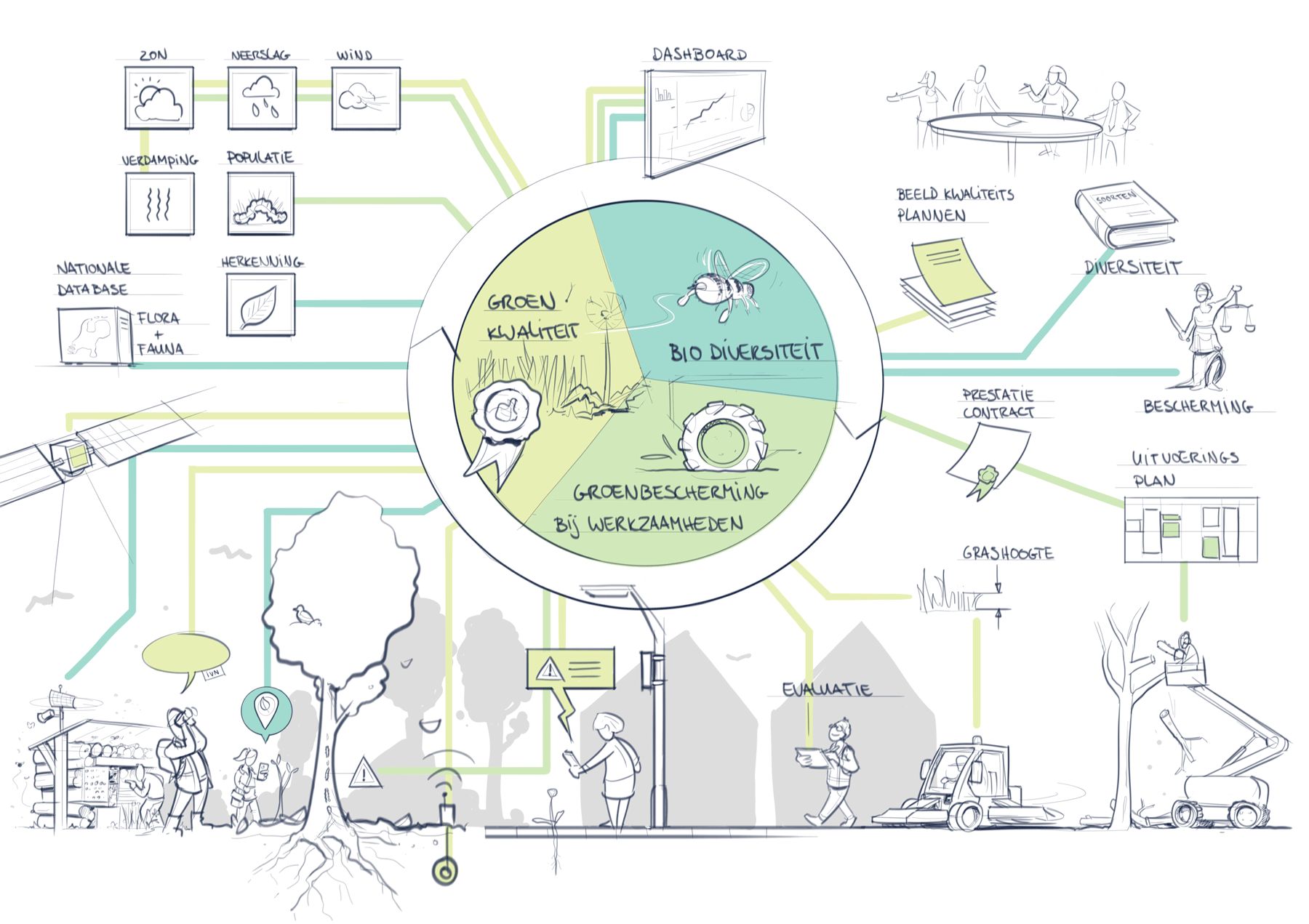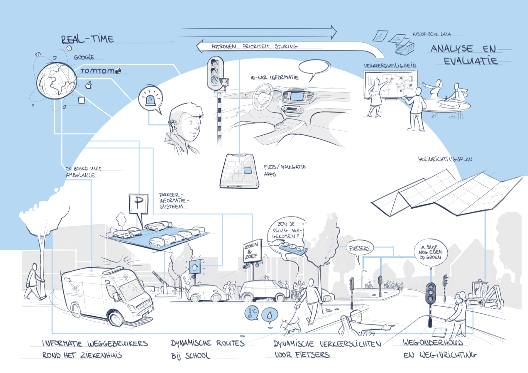 Co-creating a palette of possible digital services through it developing relevant use cases Use cases were developed for 3 opportunities in phase 2 with stakeholders from within and outside the municipality. Use cases are rich scenarios of what such a service could look like. The 3 elaborated use cases are: Green Management, Safe Traffic and Energy Match. These are discussed again with residents and other stakeholders in the neighborhood, to validate and enrich. |