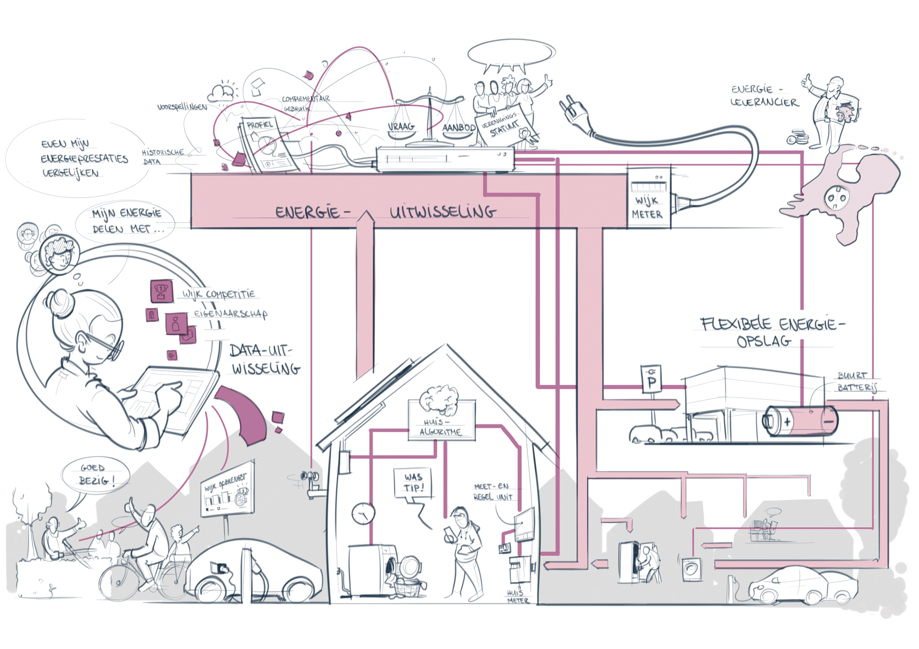 Realization and exploitation Implementation of the services and evaluation with stakeholders in the neighbourhood The 3 services will be further designed (technically) and implemented. A participative approach with local stakeholders is designed to engage citizens from the neightbourhood in the further specification and evaluation of the service and the data management that is involved. The use case EnergyMatch has already been further designed as a separate study at the request of by the programme Social Responsible Innovation Energy of the Topsector Energy, commissioned by RVO. For more information on this study, please visit EnergyMatch. |