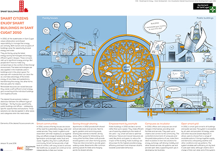 Step Three: Roadmapping The aim the third step is to develop roadmaps for the focus areas. In the roadmaps the options to realise the desired future scenarios of the cities are explored. A desk study is done to collect available information on technological options. Experts from industry, knowledge institutes and governments are invited to workshops to share their views on future possibilities. The leading universities - University Polytechnica de Catalunya (UPC) and TU/e Smart Mobility - invited their extensive networks with companies and knowledge institutes in the focus areas. Focus of the roadmaps is on sustainable technologies, sustainable behaviour and sustainable organisation. The roadmapping research resulted in a set of general roadmaps for Smart Buildings, Smart Mobility and Smart Urban Spaces.