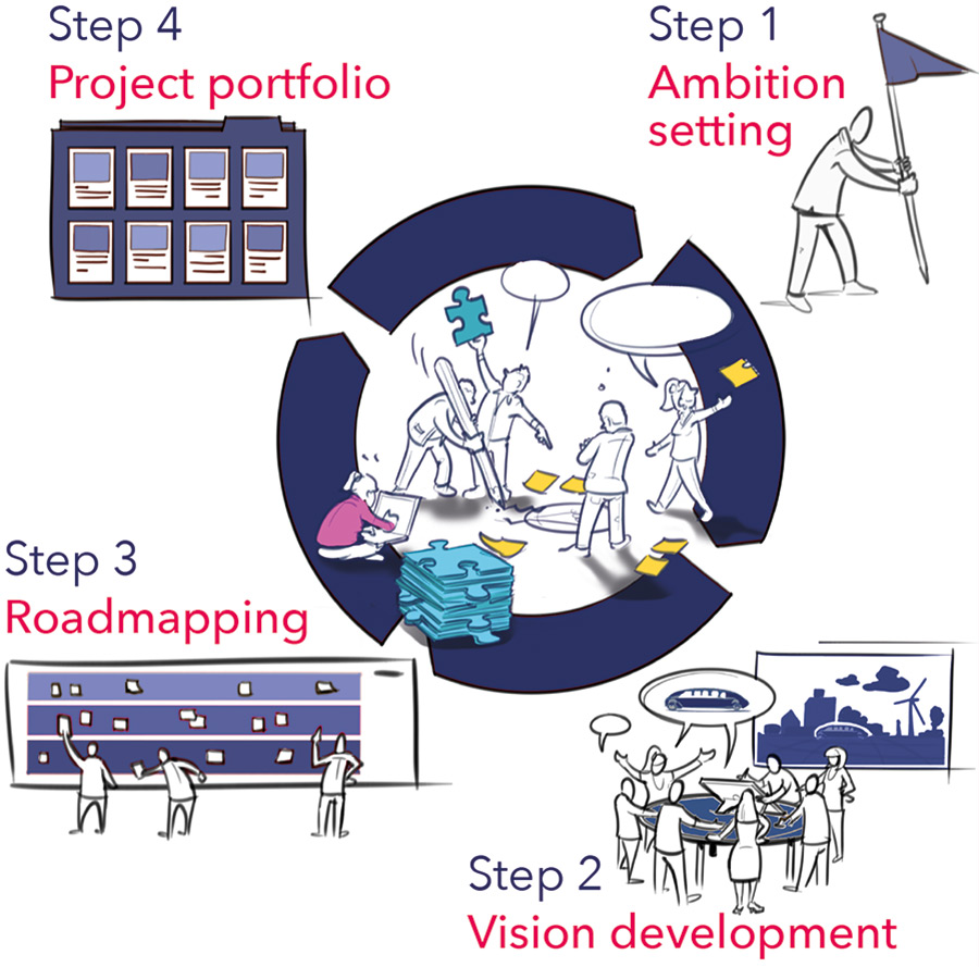 The general roadmaps (in banner format) and reports are available as PDF. To make the vast amount of information in the roadmaps more accessible animated movies are made to present the roadmaps.. The General Roadmaps are described in more detail. The reports are available in PDF (A3 - suitable for double-sided printing):Published August 28, 2017. Published August 28, 2017. Published August 28, 2017. The General Roadmaps are used in Roadmapping workshops in the partner cities. Through the network of the cities local companies and knowledge institutes were involved in the creation of city specific roadmaps. |